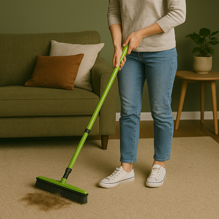 Traditional brooms just push pet hair around or send it flying. Our soft rubber bristles attract and trap the hair like a magnet—no more chasing it across the room